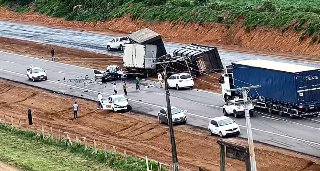 As informações iniciais apontam para uma colisão envolvendo dois automóveis, um caminhão e uma carreta.